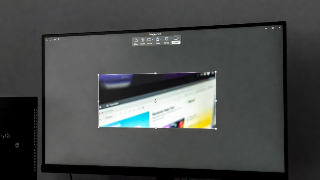 Один из самых удобных вариантов — сочетание клавиш Win + Shift + S. После нажатия экран слегка затемняется, а в верхней части появляется панель выбора области. Система предлагает несколько режимов захвата: можно выделить прямоугольную область, обвести нужный фрагмент произвольной формой, сохранить конкретное окно или сделать снимок всего экрана.