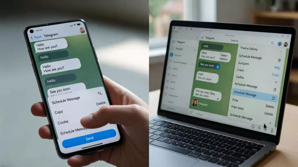 Функция работает одинаково хорошо на всех платформах — Android, iPhone и компьютере. Не требует никаких дополнительных приложений или ботов. Всё, что нужно — несколько секунд на выбор времени отправки.