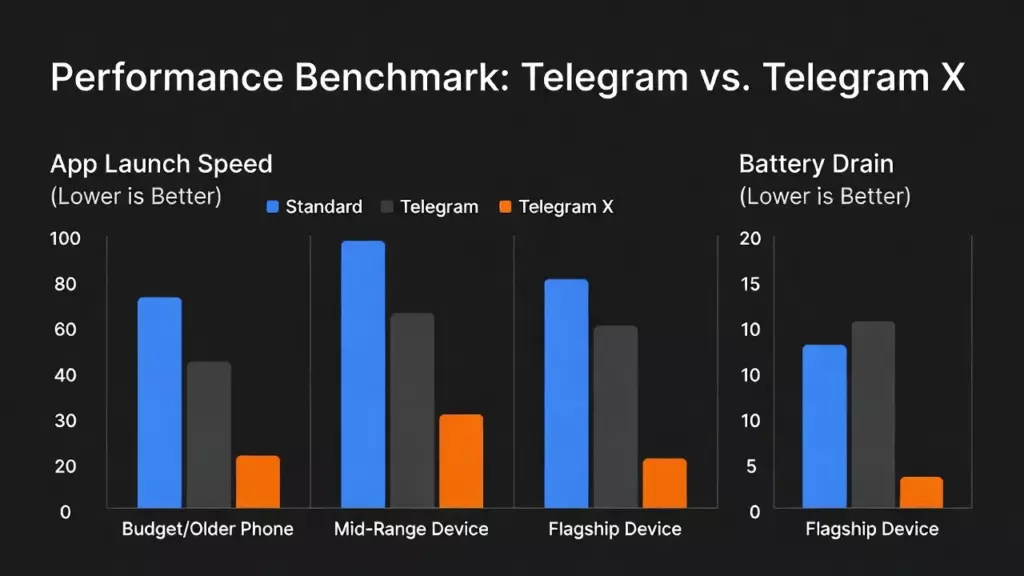 Telegram X оптимизирован лучше и работает плавнее на устройствах с ограниченными ресурсами. Нативный код и оптимизированная архитектура делают его идеальным выбором для бюджетных или старых смартфонов.